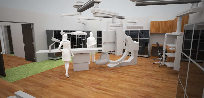 Architectural Design of existing Catheterization Laboratory to accommodate the requirements of new catheterization machine including control room, generator room, and supply storage. Area of renovation is approximately 2,300 Sq.Ft. Architectural, fire protection, plumbing, HVAC and electrical system were modified to accommodate the renovation and provide hybrid operating environment. The control room has new flooring, counter tops and was designed per new requirements of the imaging machine. Phasing plan was developed for continued operation of an adjoining lab.